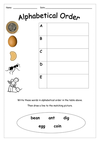 Alphabetical order is a system whereby character strings are placed in order based on the position of the characters in the conventional ordering of an alphabet. Stop the tape at random points and the students have to line up in the correct alphabetical order according to. It may be helpful for the student to number the words as they would appear in alphabetical order before writing them to avoid erasures.