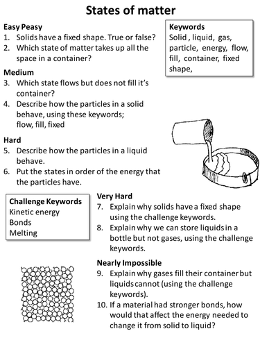 States of Matter differentiated worksheet by skyujones ...