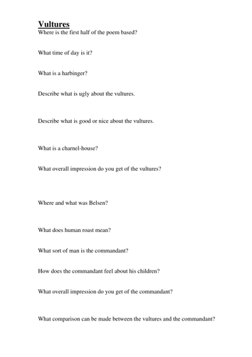questions for GCSE poems cluster 1 by goldson1 | Teaching ...