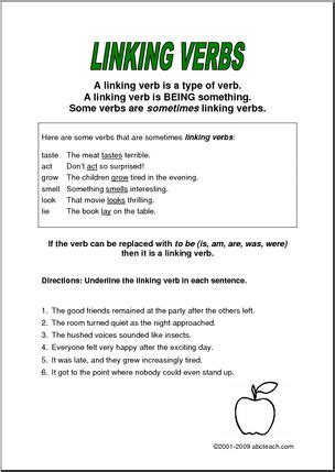 Linking Verbs 2 (elem) Rules and Practice I abcteach.com ...